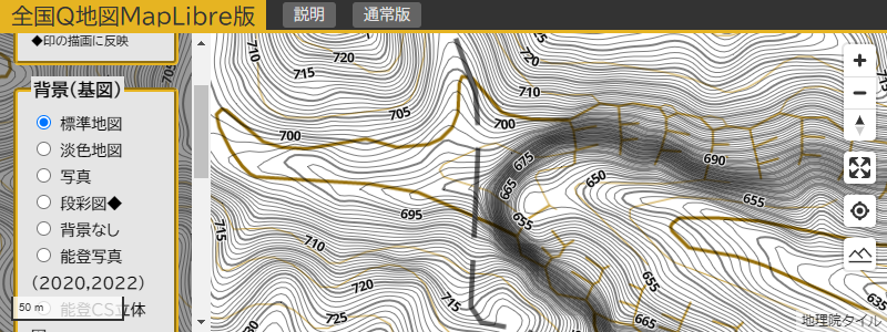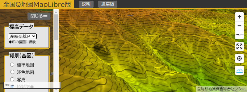 オープンソースの地図ライブラリであるMapLibre GL JSを使った「全国Q地図MapLibre版」は、2024年1月7日に公開を開始し、現在、「Q地図地形ビューアー」として地形表示に特化して順次、機能追加を進めています。
